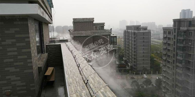 小區(qū)樓頂小花園噴霧降塵裝置,可進(jìn)行人工降雨降霧除塵,夏季可以降溫,大大改善小區(qū)的居住環(huán)境。