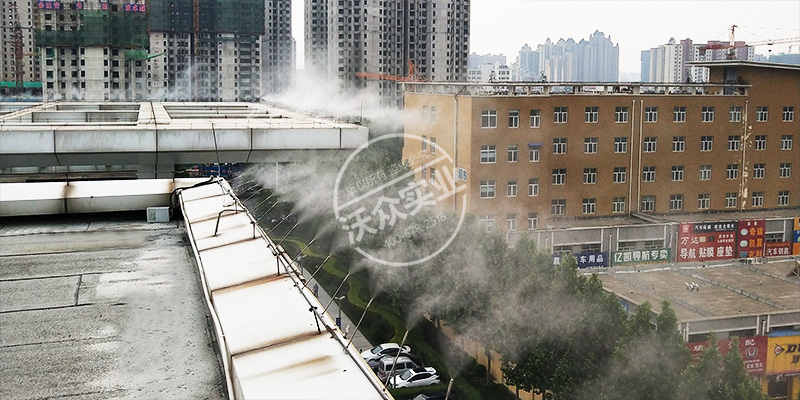 該項(xiàng)目位于河北省邢臺(tái)市眼科醫(yī)院的樓頂,圍繞樓頂四周采用高壓霧化和特指離心噴頭,利用高空優(yōu)勢(shì),霧化水顆粒在高空中飄散,對(duì)周圍環(huán)境中的灰塵清洗降霾除塵,達(dá)到潔凈空氣的功效。