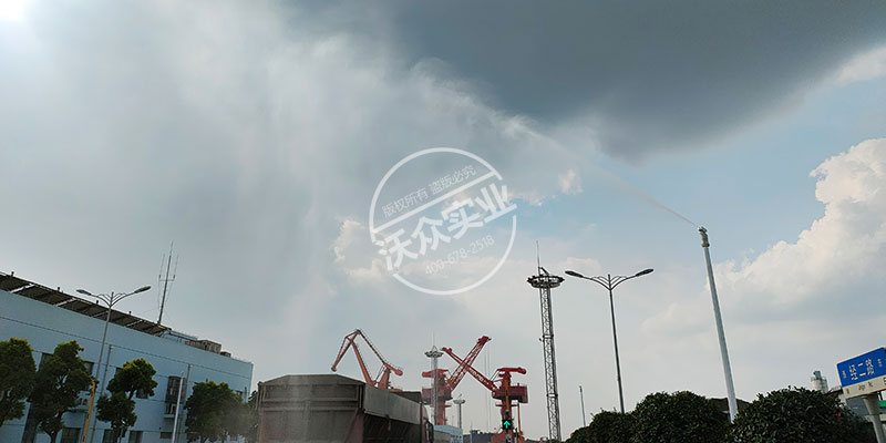 南通海門區(qū)寶鋼物流內(nèi)部通道安裝的高空射水菲霧降塵除霾系統(tǒng),一臺7.5Kw主機(jī),帶10根6米高桿對內(nèi)部道路全覆蓋式噴霧降塵除霾,清潔周邊空氣環(huán)境。