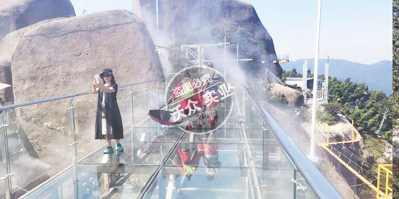 位于安徽安慶的巨石山4A級景區(qū),在玻璃棧道兩側(cè)安裝霧森造景的項目已經(jīng)完工,正式投入使用,游客紛紛至此感受這神奇的仙霧,拍照留念。