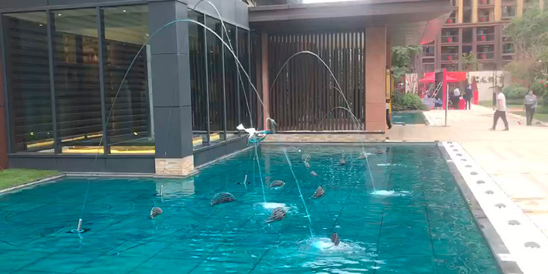 該項(xiàng)目位于滎陽興華路龍熙灣售樓部,在大門兩側(cè)安裝了波光跳泉。