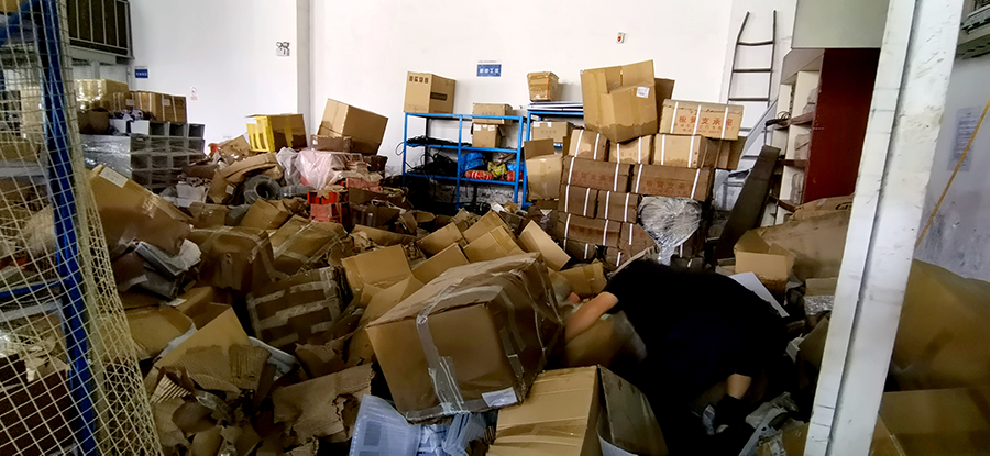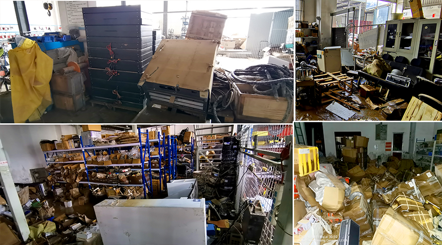 不少紙質(zhì)材料毀于一旦,一批批電子元件被運(yùn)送出去,做報(bào)廢處理……原本少許擁擠的廠房,空蕩了不少,工廠損失難以估量。