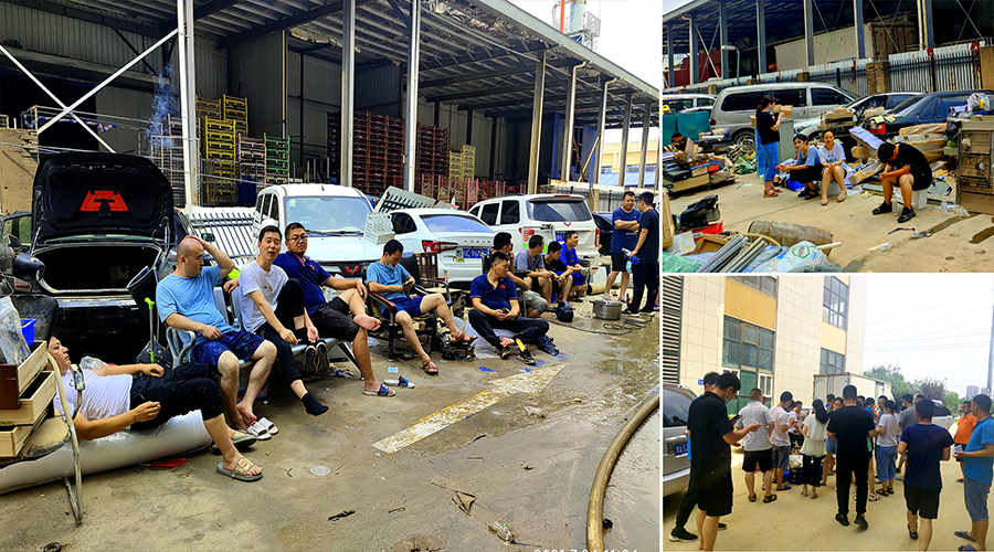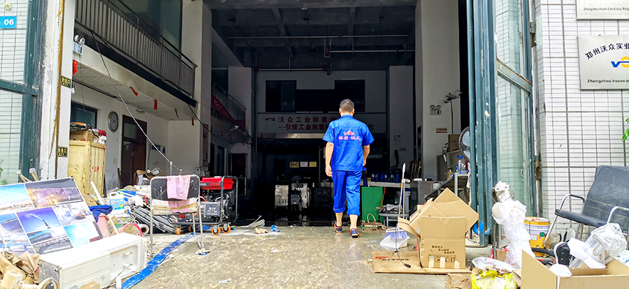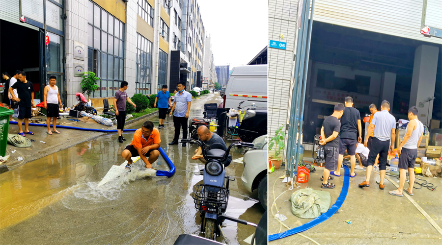 鄭州沃眾廠房地勢(shì)較低,積水只能靠污水泵抽出。鄭州沃眾領(lǐng)導(dǎo)帶領(lǐng)員工24小時(shí)不間斷抽排水。