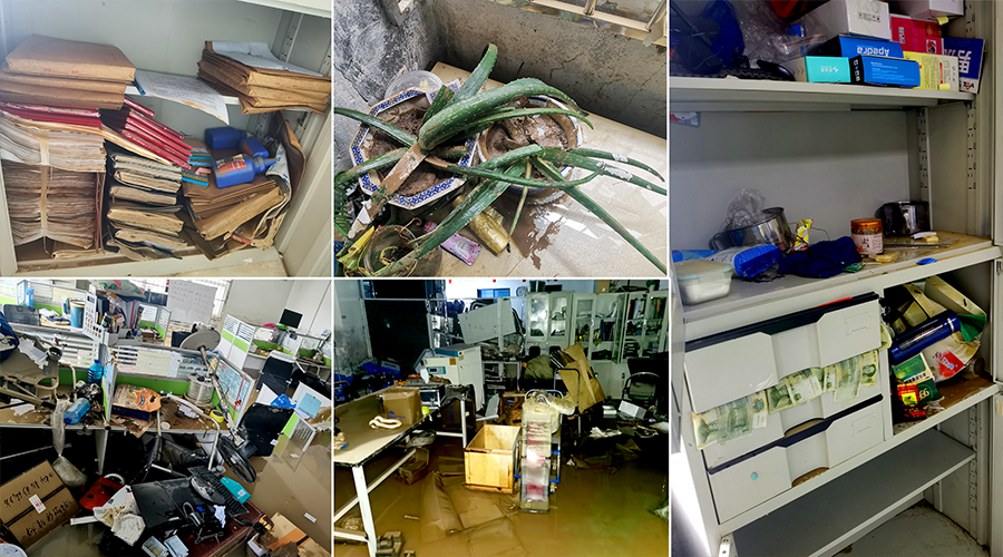 沃眾人員經(jīng)過(guò)9天的規(guī)整、處理、報(bào)廢、清掃工作,所有區(qū)域均已達(dá)到辦公條件。
