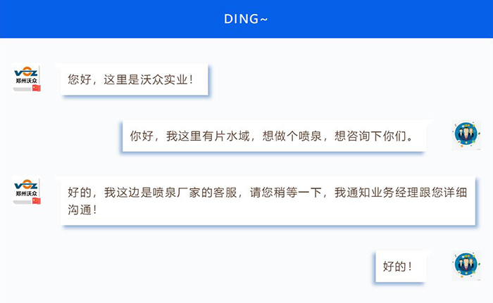 沃眾業(yè)務(wù)經(jīng)理溝通客戶需求、現(xiàn)場情況,對所建噴泉做合理建議。