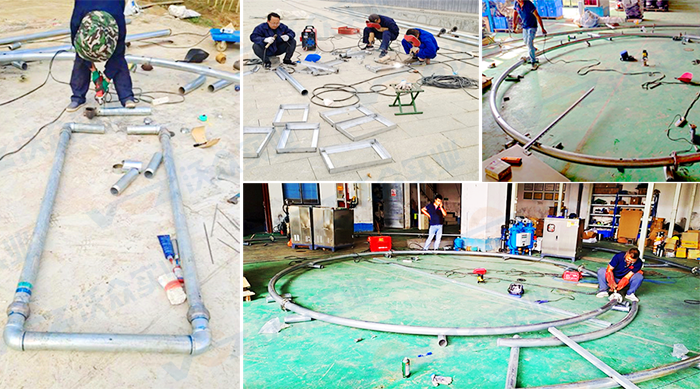 對管道 、電氣、水下燈等有條件的零部件,均采用提前預(yù)制加工的方法,這也是確保工程進(jìn)度和工程質(zhì)量的關(guān)鍵!