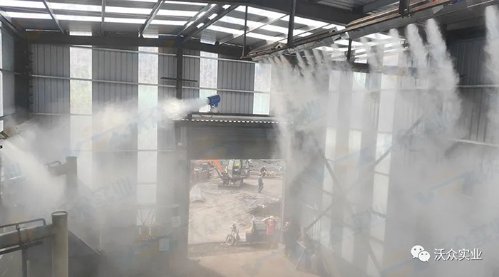 工廠/車間內(nèi)部可選用空壓微霧降塵系統(tǒng)、空壓微霧箱聯(lián)動(dòng)空壓炮,可大大改善車間、廠房?jī)?nèi)部空氣環(huán)境,達(dá)到降塵目的。