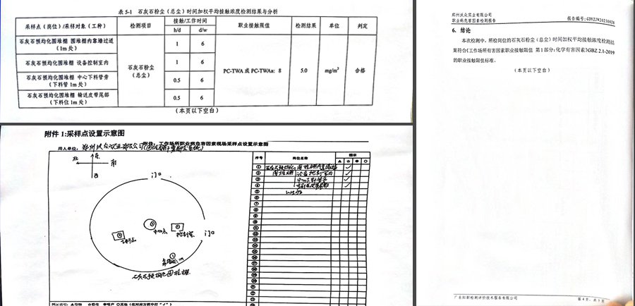 華潤(rùn)水泥圓堆取料機(jī)處設(shè)置了沃眾二流體干霧抑塵系統(tǒng),安裝完畢后,進(jìn)行了圓堆棚“工作場(chǎng)所職業(yè)病危害因素檢測(cè)”,在生產(chǎn)作業(yè)正常,干霧抑塵系統(tǒng)運(yùn)行正常的情況下,所檢崗位的石灰石粉塵(總塵)時(shí)間加權(quán)平時(shí)接觸濃度檢測(cè)結(jié)果符合《工作場(chǎng)所有害因素職業(yè)接觸限值 第1部分:化學(xué)有害因素》GBZ 2.1-2019的職業(yè)接觸限值標(biāo)準(zhǔn)。