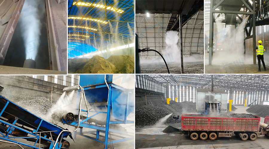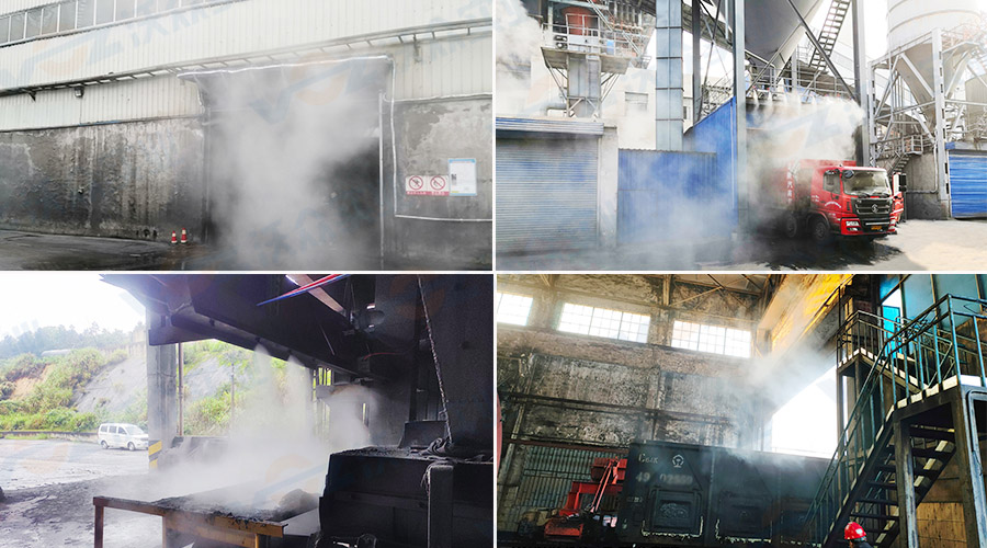 在廠房內(nèi)部,物料堆積處、裝卸點、運(yùn)送帶等區(qū)域,易激起粉塵的區(qū)域,設(shè)置沃眾空壓微霧抑塵設(shè)備,減少粉塵揚(yáng)起,為工作人員創(chuàng)造良好工作環(huán)境。
