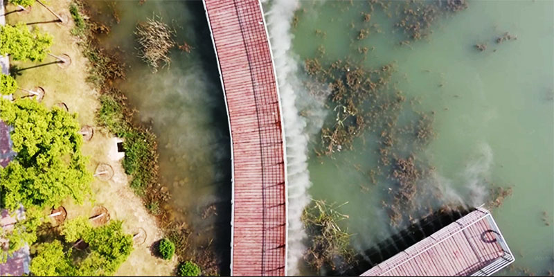鄭州雕塑公園云霞菲霧項目依托于水中棧道,在棧道兩側(cè)做噴霧效果,菲霧浮于賈魯河上面,猶如一層面紗,讓河水變得美麗而神秘。